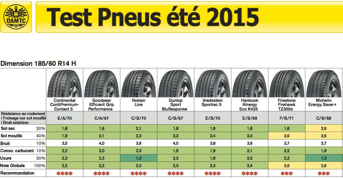 L’ADAC (fédération allemande des clubs automobiles) effectue chaque année des tests comparatifs sur des pneus hiver et été de manière indépendante. Les résultats de ces tests permettent aux automobilistes de choisir les meilleurs pneus pour leur véhicule en fonction de différents critères, tels que la distance de freinage ou le comportement sur route mouillée.